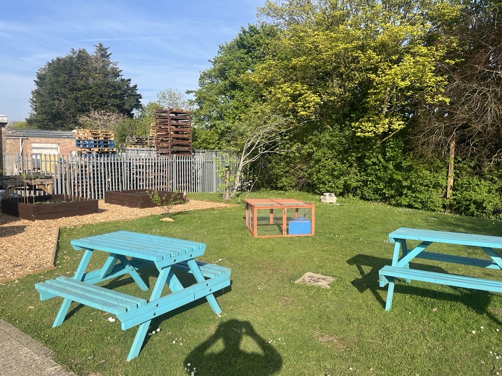 The Riverway Garden site has recently undergone an exciting transformation, with several new features added to enhance outdoor learning and student engagement. Among the latest developments are an outdoor classroom and a purpose-built outdoor cooking area, providing hands-on opportunities for students to explore sustainability and food preparation in real-world settings. Newly laid pathways improve access across the garden, and the addition of dedicated horticulture beds supports a unique “fork-to-food” initiative. This allows students to grow, harvest, and cook their own produce as part of the Food Technology curriculum and Horticulture vocational modules. The site also offers a calm and nurturing environment as home to a group of resident guinea pigs, adding to the sense of community and connection to nature.